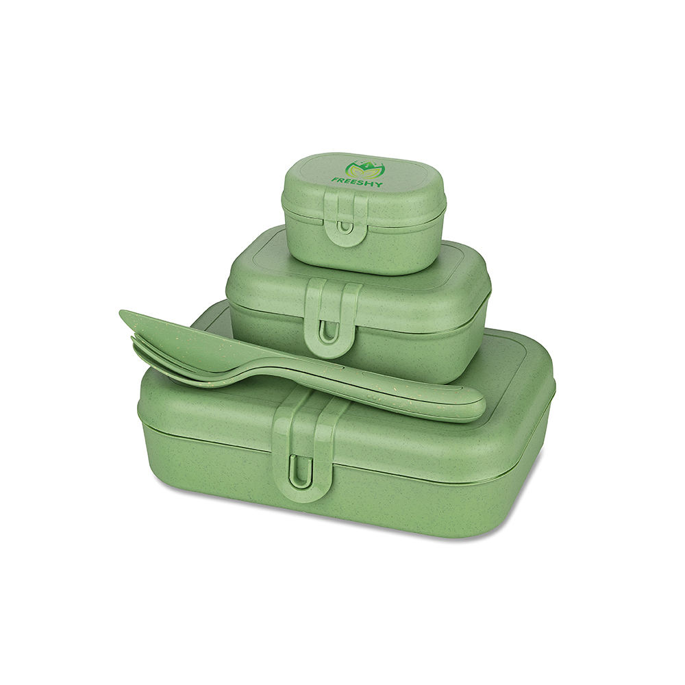 <p>Bei dieser geräumigen Lunchbox mit Clipverschluss wurde an alles gedacht. Obst, Salate & vieles mehr finden im geräumigen Inneren ihren Platz und können in den zwei integrierten kleinen Boxen verstaut werden, die auch separat genutzt werden können. Messer, Gabel und Löffel können besonders platzsparend ineinandergesteckt werden. Natürlich sind alle Bestandteile spülmaschinengeeignet. Der Markenwerbeartikel aus dem Hause KOZIOL stammt aus der Organic Collection. Alle Artikel dieser ökologischen Werbeartikel-Serien enthalten natürliche Zellulose und weisen weder Melanin, Formaldehyd noch BPA auf. Zugleich sind die Thermoplast-Produkte extrem langlebig und absolut unempfindlich gegenüber Hitze - bis mindestens 100 Grad, sowie gegen Brüche oder Splittern. Ein weiterer Pluspunkt: die <a href="https://www.hach.de/werbeartikel/made-in-germany.html">Herstellung in Deutschland</a> ermöglicht eine aktive Reduktion von CO² durch Vermeidung von langen Transportwegen und den Einsatz von Ökostrom.</p>