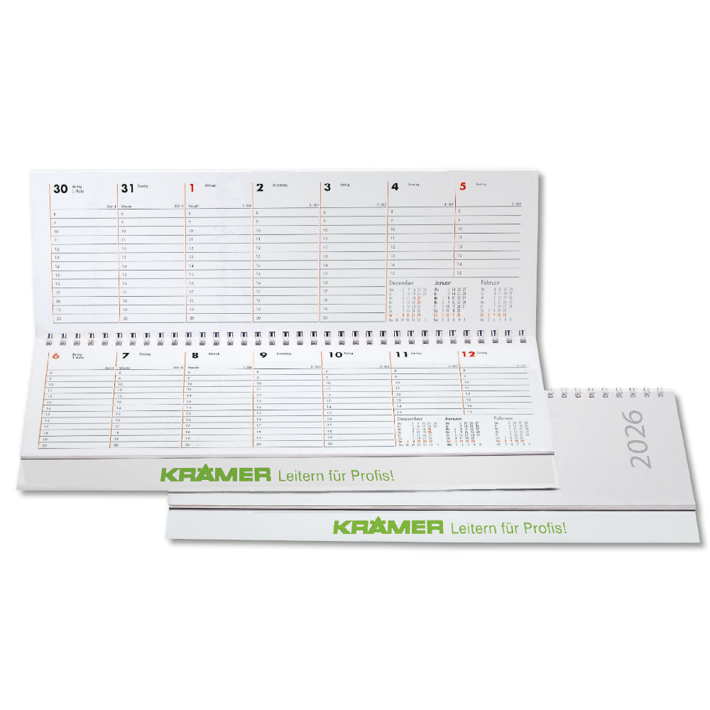 Querkalender mit Wire-O Bindung, weißer Karton-Einband