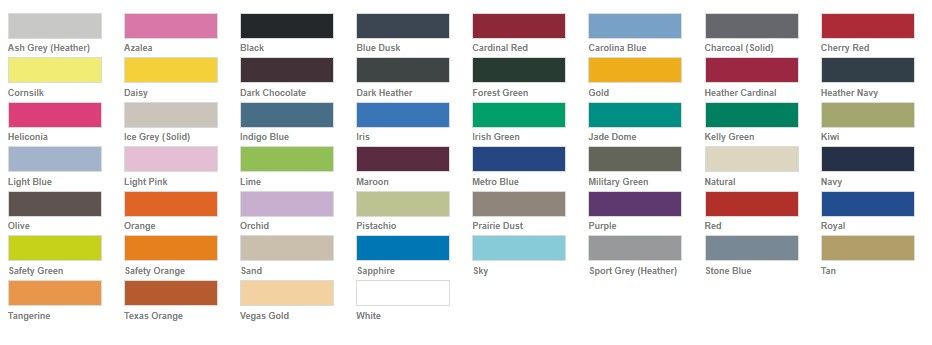 Die T-Shirts sind auf Anfrage auch in den im Bild aufgeführten Farben bestellbar.